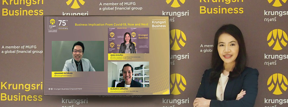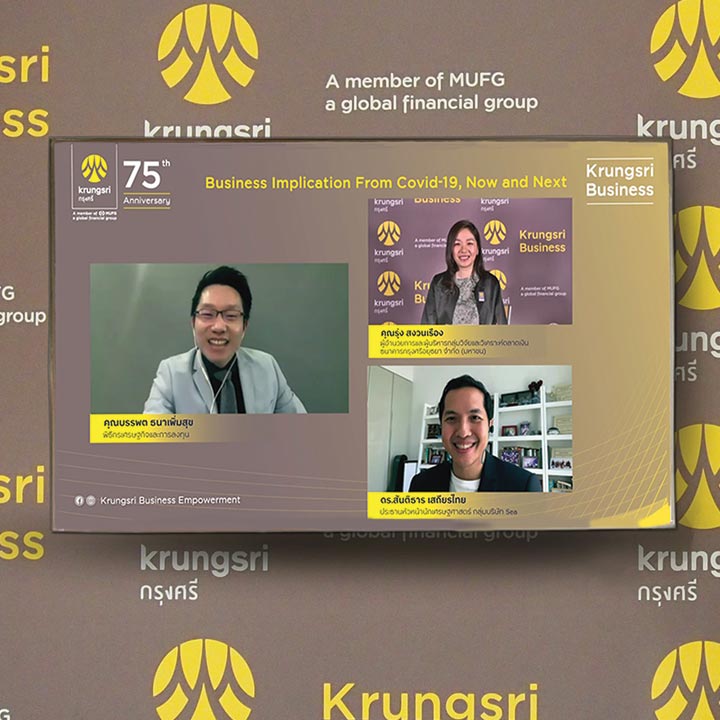 “Business Implications from COVID-19, Now and Next Series” will include four sessions in total. The first session was successfully held in April, with distinguished guest speakers including Dr. Santitarn Sathirathai, Group Chief Economist of Sea Limited, and Ms.Roong Sanguanruang, Krungsri Head of Global Markets Research and Analysis Section, who jointly provided an update about the impact of COVID-19 crisis on the economy and financial sectors, the government’s assistance measures, as well as shared insights into the outlook of global and Thailand’s economies and the future trend of the economies.