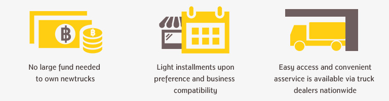 Currently, Bank expands the Krungsri Truck to retail clients, both individuals and juristic persons via dealers. Therefore, you can be confident that Krungsri Truck is suitable for all business sizes.