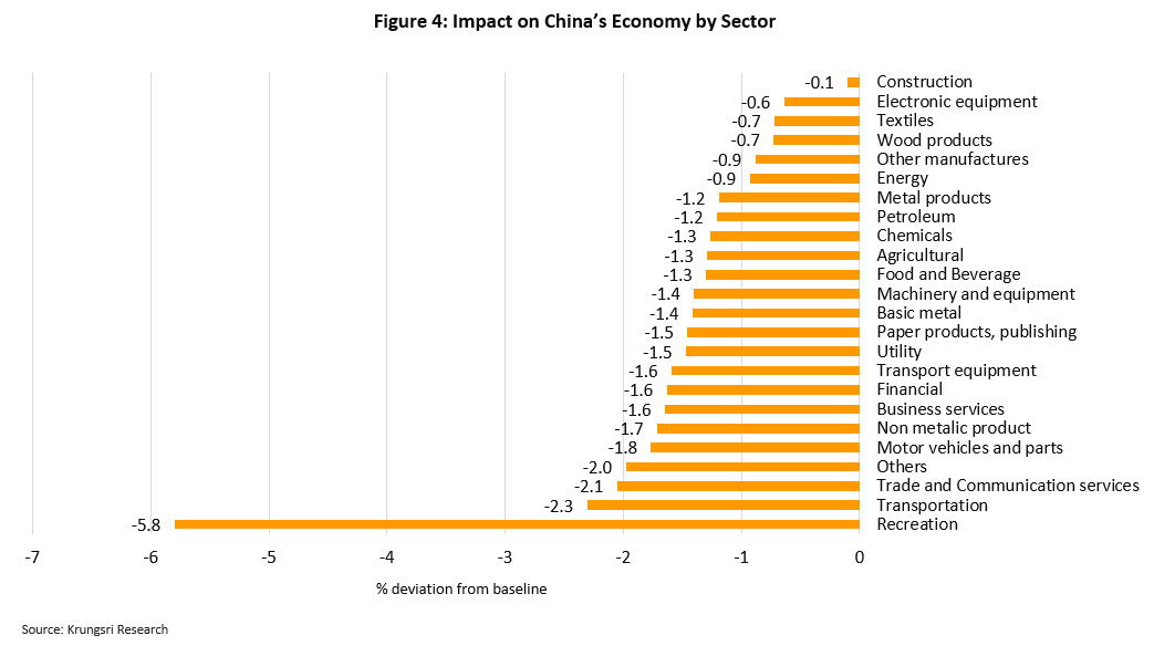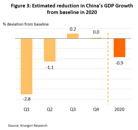 As a result, the negative impact on China’s economy will spillover to the global and Thai economies. This would be through three major transmission channels - weaker tourism sector, supply disruption, and income effect (multiplier effect).