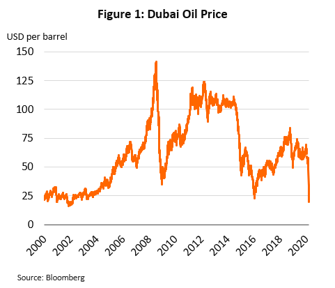 There is uncertainty in the global oil market this year. Demand for oil will tumble as economic activities have been crippled by the coronavirus outbreak and are only projected to recover in the last quarter of 2020. Meanwhile, excess oil supply will continue to pressure crude prices for several years. We project oil prices would stay at very low during mid-2020, with Dubai crude averaging US$44 a barrel in 2020 and $53.8 a barrel in 2021.