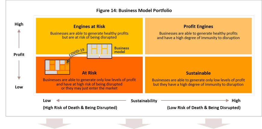 The Covid-19 crisis has triggered huge transformations across many different parts of the economy as well as significantly accelerating the impact of megatrends that were already impacting society and the economy. Many of these changes will in the future solidify into the ‘new normal’, most obviously the surge in the use of technology in daily life. In addition, the crisis has also reminded us about our tremendous exposures to risks, ‘black swan’ events, and uncertainty. Businesses that were in the past classified as ‘engines at risk’ may have suddenly fallen into the ‘at risk’ group as a result of the crisis, including airlines, hotels and other businesses reliant on the tourism industry, and retailers and restaurants that provide older, offline-only services. This dramatic change in the environment illustrates how evaluating an organization’s potential with regard only to the current business environment may well be insufficient to the task in dealing with sudden future changes.