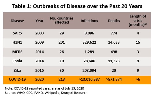 [4] Data on real GDP is from the Office of the National Economic and Social Development Council (NESDC). Comparisons with past recessions are based on the annual year-on-year contractions (i.e. on the four quarters following the initial crisis), which the 1997 crisis runs from 2Q97 to 1Q98 and the 2008 crisis goes from 4Q08 to 3Q09