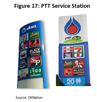 Within the Thai context, PTT[27] provides an interesting case study of a company that has overhauled its business model and, in the process, become a market leader. Initially, transnational players, including Shell, Esso and Caltex, had a stranglehold on the service station market because of the greater trust on fuel quality that Thai consumers put in them relative to domestic players. However, through the intelligent use of marketing campaigns upcountry, PTT built national recognition to compete against these transnational players. The most important turning point coming in 2002 when PTT expanded its operations to include activities outside the scope of simply selling fuels. This included partnering with 7-Eleven and launching the Café Amazon brand and not long afterwards, PTT opened service stations offering a full range of services under the brand ‘PTT Life Station’, as well as then acquiring Jet (another service station operator) in 2007, together with its chain of convenience stores, Jiffy. From this point onwards, PTT has consistently maintained its position as the market leader in service stations in Thailand, with its operations being notable for the quality of their non-fuel services and the full range of conveniences.