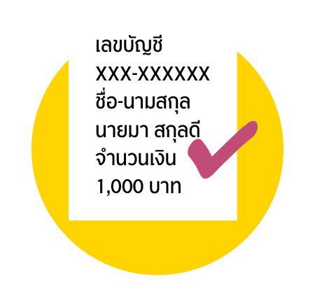 ชื่อบัญชี และเลขที่บัญชี/เลขประจำตัวประชาชน หรือเบอร์มือถือที่ลงทะเบียนพร้อมเพย์ ของผู้ฝาก/ ถอน/ โอน และ ผู้รับฝาก/ ผู้รับโอน