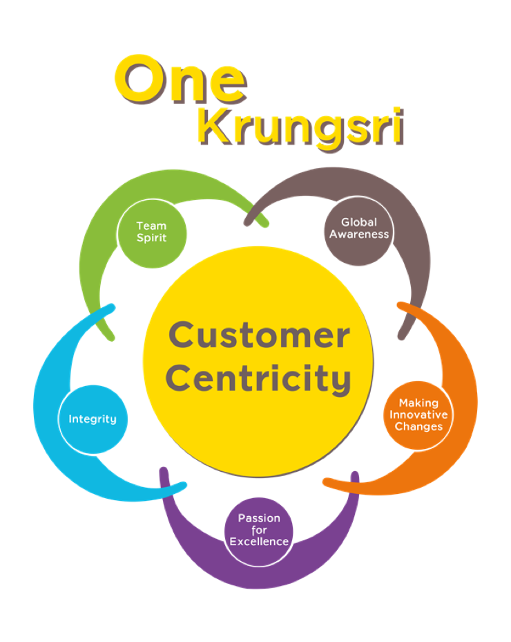 ที่กรุงศรี เราเชื่อมั่นในค่านิยม 6 ข้อที่อธิบายถึงความเป็นชาวกรุงศรีของเรา พวกเรายึดมั่นในการทำงานร่วมกันเพื่อส่งมอบผลิตภัณฑ์และการบริการทางการเงินที่ตอบโจทย์ความต้องการของลูกค้ามากที่สุด