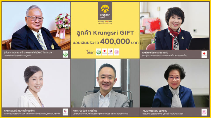 กรุงเทพฯ (9 กรกฎาคม 2563) – นายพงษ์อนันต์ ธณัติไตร ประธานคณะเจ้าหน้าที่ด้านธุรกิจลูกค้ารายย่อยและเครือข่ายการขาย ธนาคารกรุงศรีอยุธยา จํากัด (มหาชน) เป็นตัวแทนลูกค้ากรุงศรีที่ใช้คะแนน Krungsri GIFT แลกเป็นเงินบริจาคจำนวน 400,000 บาท มอบให้แก่ ศิริราชมูลนิธิ สภากาชาดไทย มูลนิธิรามาธิบดี และมูลนิธิโรงพยาบาลราชวิถี เพื่อสนับสนุนองค์กรสาธารณสุขในการรับมือกับสถานการณ์การแพร่ระบาดของโรคติดเชื้อโควิด-19 ที่ทุกภาคส่วนยังคงต้องเฝ้าระวัง การมอบเงินบริจาคในครั้งนี้จึงได้ทำผ่านช่องทางออนไลน์ซึ่งสอดคล้องกับมาตรการรักษาระห่างทางสังคมหรือ Social Distancing
