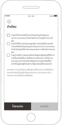 ศึกษาคำเตือนก่อนตัดสินใจซื้อหุ้นกู้ และกด “ยอมรับ”