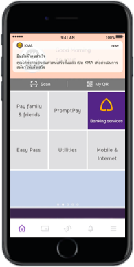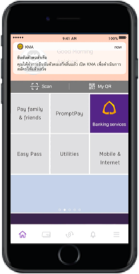 - ต้องเคยเปิดบัญชีเงินฝากหรือทำธุรกรรมทางการเงินอื่นใดด้วยบัตรประชาชน และยืนยันตัวตนด้วยเทคโนโลยีจดจำใบหน้า (Facial Recognition) ที่สาขาของธนาคารที่ใช้งานโมบาย แอปพลิเคชัน