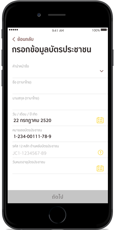 เริ่มยืนยันตัวตนที่แอปพลิเคชัน