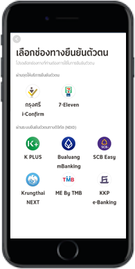 เลือกแอปพลิเคชันของธนาคารที่จะใช้ยืนยันตัวตน