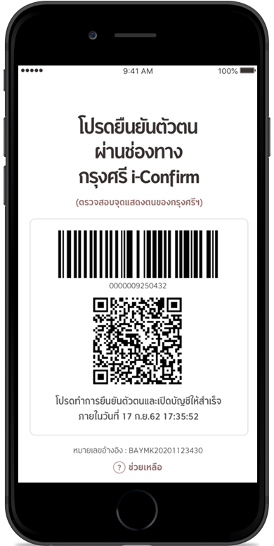 ลูกค้าจะได้รับ QR Code เพื่อนำไปสแกนที่จุดบริการ Krungsri i-CONFIRM
