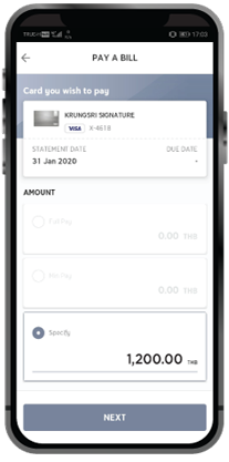 กด Pay Bill เพื่อชำระค่าบัตรเครดิต