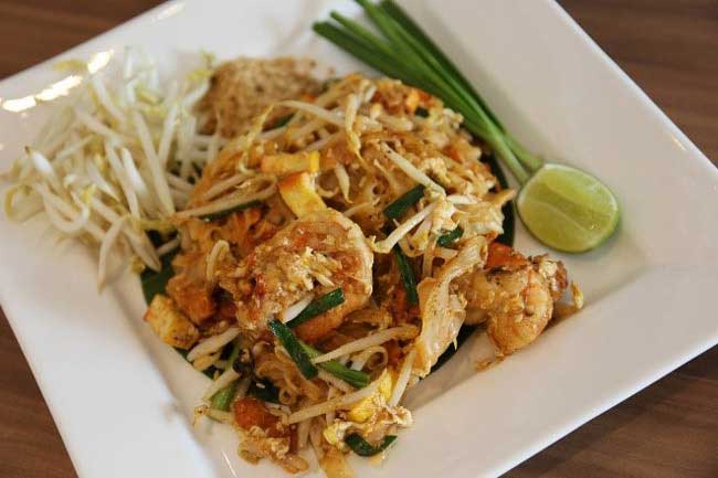 สำหรับเมนูที่พากันติดใจของร้านก็มีมากมาย เริ่มกันที่เมนูเรียกน้ำย่อยกับ ‘หมี่กรอบทรงเครื่อง’ หมี่กรอบเส้นเล็ก ทอดจนเหลืองทอง แล้วนำมาคลุกเคล้ากับน้ำปรุงรสสูตรเฉพาะ รสเปรี้ยวหวาน เผลอแป๊บเดียวก็หมดจานจนต้องขอเบิ้ล และอีกเมนูหนึ่งที่พลาดไม่ได้เลย คือ ‘ผัดไทยกุ้งสด’ เมนูครัวไทยที่ดังระดับโลก ผ่านการปรุงแบบพิถีพิถัน เส้นเหนียวนุ่ม รสชาติกลมกล่อมแบบไม่ต้องปรุงเพิ่ม ใครได้ทานก็ติดใจ
