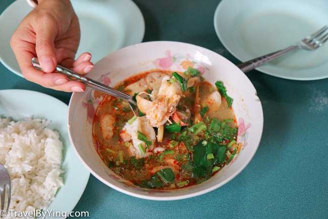 ต่อมาขอสั่ง ‘ต้มยำกุ้งน้ำใส’ เมนูน้ำ ๆ รสแซ่บจัดจ้าน แค่ยกมาเสิร์ฟ น้ำลายก็สอ!! เพราะที่ร้านเลือกใช้กุ้งแม่น้ำตัวใหญ่ เนื้อแน่นหวาน ซดกับน้ำซุปร้อน ๆ หอมกรุ่นเครื่องต้มยำ เผ็ดนิด เปรี้ยวหน่อย เรียกว่าโดนใจสุด ๆ ไปเลย