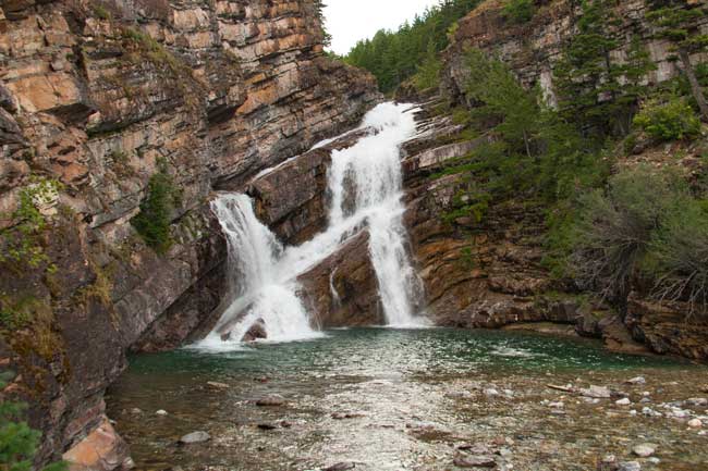 ใครไม่ชอบทะเลสาบ ก็ลองไปทวีปอเมริกาเหนือแทน เพราะที่รัฐอัลเบอร์ตา ประเทศแคนาดามี น้ำตกคาเมรอน (Cameron Falls) ซึ่งมักมี ปรากฏการณ์น้ำตกสีชมพู เกิดขึ้นที่นี่ในช่วงฤดูฝน เมื่อฝนตกหนักมากเป็นเวลานานจะชะล้าง อาร์โกไลต์ หรือตะกอนแร่ธาตุสีแดงที่ทับถมกันอยู่ตามหินผาให้ไหลลงมาตามลำน้ำ กระทั่งทำให้สายน้ำเปลี่ยนเป็นสีชมพูในที่สุด ดังนั้น น้ำตกสีชมพูจึงไม่มีให้เห็นกันบ่อยนัก ถ้าใครอยากมาเที่ยวชมก็คงต้องรอฤดูฝนที่เป็นใจแล้วล่ะครับ