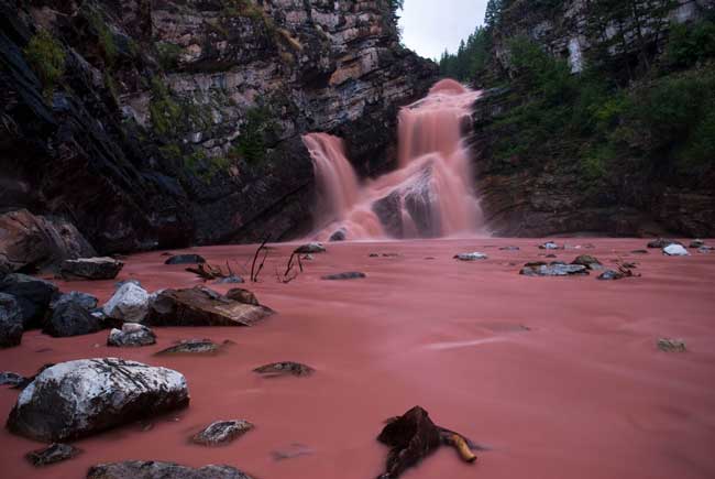 3. Cameron Falls แคนาดา ปรากฏการณ์น้ำตกสีชมพู