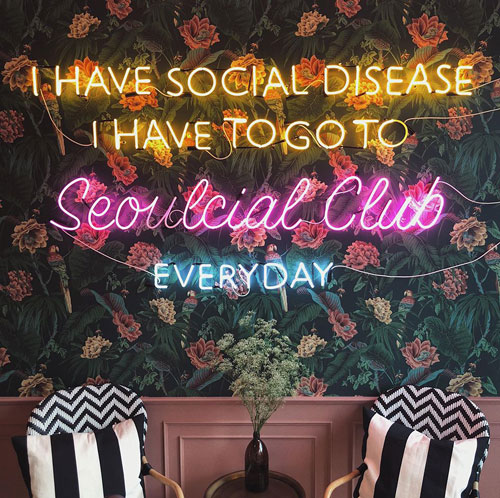 เมื่อเข้ามาสู่ใจกลางสยามสแควร์ซอย 3 คุณจะได้พบกับความเก๋ไก๋ของ Seoulcial club คาเฟ่แบบเกาหลีราวกับอยู่ในกรุงโซล ซึ่งที่นี่ไม่ได้มีดีแค่บรรยากาศเท่านั้น แต่เจ้าของร้านรังสรรค์เมนูขนมและเครื่องดื่มอย่างตั้งใจ โดยบริเวณบาร์ชั้น 1 เป็นจุดหมายของคอกาแฟสาย Specialty Coffee ที่ทางร้านคัดเมล็ดกาแฟชั้นดีจากบราซิลและอเมริกาใต้ผ่านกรรมวิธีการชงด้วยเครื่องชงกาแฟสีทองที่สั่งทำขึ้นพิเศษ ส่วนชั้น 3 ของร้านถือเป็นสวรรค์ของสายเกาหลีที่รักการถ่ายภาพ ในบรรยากาศสีชมพูสวยหวานเหมาะแก่การเซลฟี่สุด ๆ พร้อมชิมเมนูซิกเนเจอร์ของร้านอย่าง Very Dirty Coffee เครื่องดื่มกึ่งของหวานที่ได้ลองแล้วจะต้องติดใจ
