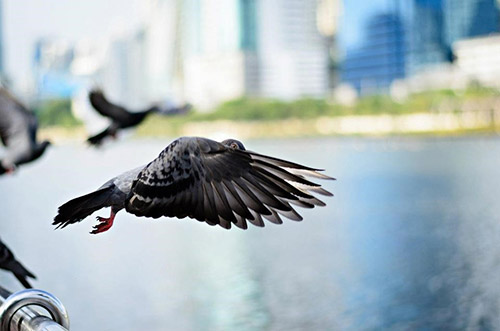 ภาพนี้ถ่ายด้วยความเร็วชัตเตอร์ 1/4000 วินาที หยุดภาพนกพิราบกำลังออกตัวบิน