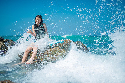 ภาพนี้ถ่ายด้วยความเร็วชัตเตอร์ 1/8000 วินาที จังหวะที่คลื่นซัดมากระทบโขดหินแรง ๆ