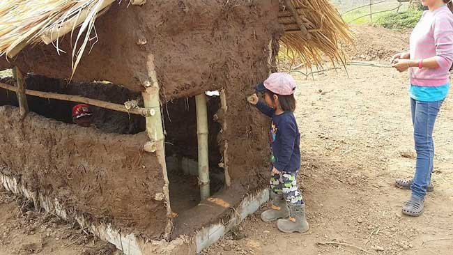 พ่อหมู: แต่ก่อนเราทำงานด้านไอทีมาตลอด จนมีโอกาสได้เรียนรู้ทางด้าน Buddhist Psychology ประกอบกับมีประสบการณ์ชีวิตมาหลาย ๆ อย่าง จนมีลูก เลยคิดได้ว่า พอมาถึงจุด ๆ หนึ่งแล้ว เราอยากได้ความสุขมากกว่ารายได้ที่เข้ามา ตอนที่ทำงานมีรายได้เยอะ แต่ก็ต้องแลกกับเวลาที่เสียไป เราอยากสอนสิ่งต่าง ๆ ให้ลูกเราเองมากกว่า เราไม่อยากให้ลูกรู้สึกว่า อยากได้อะไร แล้วเอาเงินไปแลกอย่างเดียว อยากให้ลูกเรียนรู้การเฝ้ารอ เช่น การปลูกพืชผักที่ต้องใช้เวลากว่ามันจะโต อยากให้เขารู้จักพอเพียง สิ่งนี้เองจึงทำให้ตัดสินใจที่จะย้ายครอบครัวไปอยู่จังหวัดลำปาง เริ่มทำธุรกิจใหม่เป็น School Camping และ Farm Stay ที่มีวัว ควาย ม้า สวน บ่อน้ำให้เด็ก ๆ มาเข้าแคมป์ที่นี่ โดยให้พวกเขาทำกิจกรรมในแต่ละโซนเพื่อใช้กำลังกายมาแลกอาหาร โดยตอนเช้าจะมีการแบ่งเด็ก ๆ เป็นกลุ่ม เช่น กลุ่มหนึ่งไปเก็บผัก กลุ่มหนึ่งไปเก็บฟืน อีกกลุ่มไปเก็บไข่ และกลับมารวมกันเพื่อทำอาหาร เพื่อให้เด็ก ๆ เรียนรู้ว่า เราสามารถใช้ความพยายามผ่านแรงกายในการดำรงชีวิต และพึ่งพาธรรมชาติในการใช้ชีวิต แทนที่จะใช้แค่เงินไปแลกอาหารแบบที่คนส่วนใหญ่ทำ ๆ กัน