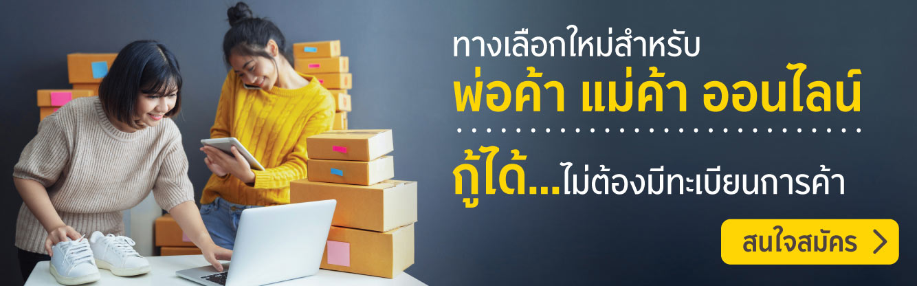 ขายของออนไลน์ด้วยกัน เพื่อนแนะนำให้ลองไปขอสินเชื่อกับธนาคารดู ตอนแรก เราก็ยังกล้า ๆ กลัว ๆ เพราะเราไม่เคยกู้เงินมาก่อน ไม่รู้ว่า ต้องมีหลักฐานอะไร มีขั้นตอนอย่างไร และที่สำคัญ เราไม่อยากไปขอให้ใครมาค้ำประกันให้ แต่ด้วยความที่ยังคิดหาวิธีอื่นไม่ออก เลยลองหาข้อมูลในเว็บไซต์ดูก่อน