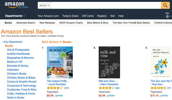 Best Seller เลยครับ จะเห็นเทรนด์หนังสือแบบไหนที่ตลาดกำลังต้องการ เช่น ด้านธุรกิจและการเงิน (Business & Money) ด้านการทำครัว อาหารและไวน์ (Cookbooks, Food & Wine) ด้านการศึกษาและการสอน (Education & Teaching) เป็นต้น