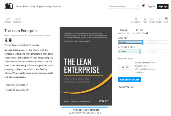 leanpub.com เป็นอีกกรณีศึกษาที่น่าสนใจเปลี่ยนแปลงวงการอุตสาหกรรมหนังสือด้วยการสร้างแพลตฟอร์มสำหรับนักเขียน สำหรับจัดพิมพ์ และขายหนังสือเองได้ง่าย ๆ ด้วยตัวเอง เช่น การสร้างหนังสือ E-book นามสกุล PDF, EPUB และ MOBI รูปแบบการเขียน การเชื่อมโยงเข้ากับแอปพลิเคชันอื่น ๆ ได้ด้วย อาทิ Dropbox, GitHub หรือ Bitbucket รวมไปถึงการตั้งราคาที่สามารถตั้งเป็นช่วงราคาได้ ด้วย Royalty fee ที่สูงถึง 90% ทำให้มีหนังสือแบบอินดี้เจาะกลุ่มตลาดเฉพาะกลุ่มเล็ก ๆ ที่ให้ความสนใจและมีมูลค่าสูง