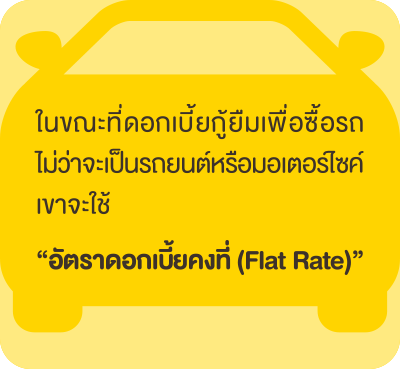แต่ถ้าเป็น อัตราดอกเบี้ยแบบคงที่ แปลว่าเขาจะคิด อัตราดอกเบี้ยครั้งเดียว ตั้งแต่วันที่ทําสัญญาแล้วคํานวณถึงวันที่เราผ่อนแล้วเสร็จ หลังจากนั้นจับหาร ด้วยจํานวนงวดที่เราหารเลย แปลว่า แม้เราจะผ่อนเงินต้นไปบางส่วนแล้ว แต่ดอกเบี้ยที่คํานวณนั้นจะใช้อัตราที่คํานวณจากเงินต้นเต็มจํานวนตั้งแต่วันแรกเลย
