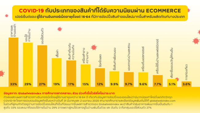 ในทุก ๆ วิกฤตนั้น ย่อมมีโอกาสเสมอ เนื่องจากวิกฤตโควิด-19 ส่งผลให้หลาย ๆ อาชีพในปัจจุบันกำลังประสบปัญหาไม่สามารถทำงานได้ คนต้องทำงานที่บ้าน (work from home) เก็บตัวอยู่กับบ้าน จึงมีหลาย ๆอาชีพที่ในช่วงยุคโควิด-19 เกิดมามากขึ้น โดยเฉพาะการขายสินค้า หรือบริการผ่านช่องทางออนไลน์ ไม่ว่าจะเป็น blogger, reviewer, youtuber, คอร์สเรียนต่าง ๆ ผ่านช่องทางออนไลน์ ไปจนถึงคนที่ขายสินค้าออนไลน์ ไม่ว่าจะเป็นอาหาร ของใช้ และสินค้าอื่น ๆ อีกมากมาย จะเห็นได้จากกราฟว่าในช่วงที่ผ่านการขายสินค้าต่าง ๆ ผ่านช่องทางออนไลน์ได้เติบโตขึ้นอย่างมากโดยเฉพาะในกลุ่มอาหาร ของใช้จำเป็น นี่จึงเป็นอีกหนึ่งช่องทางที่สามารถสร้างรายได้ให้กับเราได้ในช่วงนี้ เพราะฉะนั้นลองใช้เวลาเหล่านี้ค้นหาจุดเด่นของตัวเอง แล้วลองสร้างสรรค์ให้เกิดเป็นรายได้ขึ้นมา ไม่แน่ว่าในอนาคตสิ่งนี้อาจจะกลายมาเป็นอาชีพเสริมที่สร้างรายได้ให้กับเราได้อีกช่องทางหนึ่ง ควบคู่ไปกับงานประจำก็ได้นะ