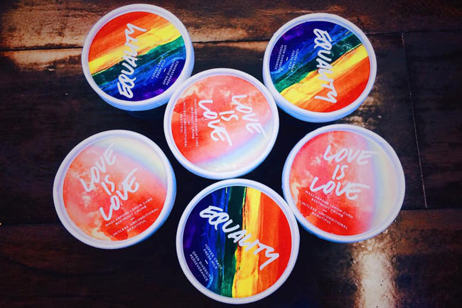 รส “Equality” คอนเซ็ปต์หลักคือความอดทนอดกลั้นในการต่อสู้ของกลุ่มคนที่มีความหลากหลายทางเพศ รสชาตินี้เลยมี Toffee Crack และ Sprinkle รูปร่างกลม ๆ หลากสีที่ต้องเคี้ยวเพราะอยู่ในเนื้อไอศกรีมรสนมฟาร์มมิลค์สีขาว ให้ความหมายว่ามนุษย์ทุกคนมีความหลากหลายท่ามกลางเงื่อนไขทางสังคมที่เราต้องปฏิบัติ ส่วน “Love is Love” ได้แรงบันดาลใจจากประโยคที่ว่า ‘Love is beautiful.’ ที่มองว่า ความรักเป็นสิ่งสวยงาม ไม่ว่ารักนั้นจะเป็นรูปแบบใด ไอศกรีมที่ได้ออกมาจึงเป็นรสมะนาวที่ไม่ได้เป็นสีขาวหรือเขียวตามแบบฉบับปกติ แต่เป็นสีชมพูธรรมชาติจากบีทรูทที่ให้ความรู้สึกและรสชาติภายนอกหวานข้างในเปรี้ยว โดยยังผสม Lemon Curd และ Butter Crumb เพื่อสร้างความสนุกสนานให้กับไอศกรีมด้วย เปรียบเหมือนความรักที่มีความตื่นเต้นอยู่ข้างใน