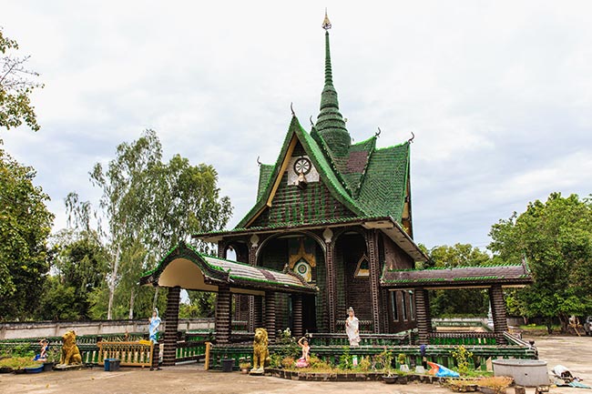 ที่แรกที่อยากให้ทุกคนไปสักการะ คือวัดป่ามหาเจดีย์แก้ว ซึ่งจัดว่าเป็นหนึ่งใน Unseen Thailand เลยก็ว่าได้! สร้างขึ้นเมื่อปี พ.ศ. 2527 ด้วยขวดกว่า 1,500,000 ขวด ทำเป็นลวดลายบนกำแพงวัด โบสถ์ ห้องน้ำ หรือแม้แต่กุฏิ เมรุ เป็นภาพที่แปลกตาสวยงาม และโดดเด่นหาดูที่อื่นไม่ได้ต้องไปเห็นด้วยตาตัวเองซักครั้งจริง ๆ! โดยใครจะไปก็อย่าลืมนำขวดเปล่าไปบริจาคให้วัดด้วยก็ได้ เป็นการทำบุญและยังช่วยรักษาโลกได้อีกด้วยครับ!