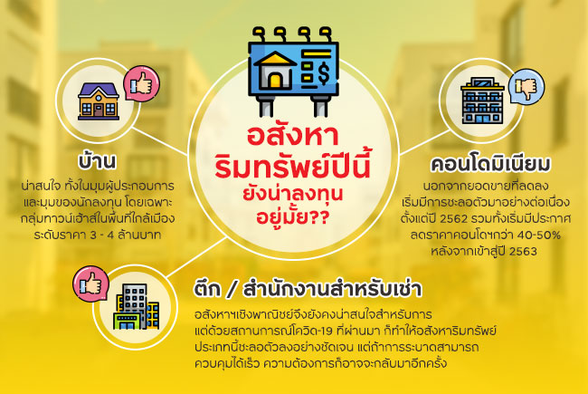 ตั้งแต่ต้นปีที่ผ่านมา พิษเศรษฐกิจจากไวรัสโควิด-19 ได้ส่งผลกระทบต่อภาคธุรกิจทั่วโลกเป็นอย่างมาก ซึ่งธุรกิจอสังหาริมทรัพย์ (“อสังหาฯ”) เองก็เป็นหนึ่งในธุรกิจที่ได้รับ ผลกระทบอย่างหนักเช่นกัน โดยธุรกิจอสังหาฯในประเทศไทยนั้น มีกำลังซื้อลดลงไปมากกว่าครึ่ง โดยเฉพาะกลุ่มลูกค้ารายใหญ่อย่างชาวจีน นอกจากนี้ การที่เหตุการณ์นี้ยังคงลากยาวไปเป็นเวลาหลายเดือน จึงส่งผลกระทบต่อกลุ่มตลาดในประเทศด้วยเช่นกัน โดยทั้งผู้ซื้อรายใหญ่อย่างกลุ่มผู้ประกอบการหรือเจ้าของธุรกิจ และผู้ซื้อรายย่อยอย่างกลุ่มพนักงานบริษัทก็พากันขาดสภาพคล่องไปตาม ๆ กัน จึงทำให้กำลังซื้อภายในประเทศนั้นลดลงอย่างหลีกเลี่ยงไม่ได้ จะเห็นได้ว่า ไวรัสโควิด-19 ได้สร้างจุดเปลี่ยนต่อธุรกิจอสังหาฯของไทยไปเป็นอย่างมากตั้งแต่เริ่มมีการแพร่ระบาดของเชื้อโรค ทำให้ต้องล็อกดาวน์ประเทศ มีการเว้นระยะห่างทางสังคม หรือ Social Distancing ก่อให้เกิดเป็น New Normal เมื่อคนซื้อไม่กล้าออกมานอกบ้าน ส่งผลให้ผู้ประกอบการเองต้องเร่งปรับตัวเพื่อความอยู่รอด พัฒนาการขายสินค้าผ่านแพลตฟอร์มออนไลน์เพื่อให้เข้าถึงกลุ่มลูกค้าได้ทุกช่องทาง พร้อมทั้งมีการงัดกลยุทธ์ต่าง ๆ ขึ้นมาเพื่อกระตุ้นยอดขายกันอย่างมากมาย แล้วเราในฐานะผู้ซื้อก็จำเป็นต้องศึกษาหาความรู้เพิ่มเติม ก่อนตัดสินใจซื้อหรือลงทุนเช่นกัน เพราะธุรกิจนี้ไม่ได้มีเพียงแค่การซื้อเพื่ออยู่อาศัยเท่านั้น ยังมีส่วนของการลงทุนเชิงพาณิชย์ด้วย ดังนั้นก่อนตัดสินใจลงทุน เรามาทำความเข้าใจถึงสถานการณ์ของอสังหาฯ ในตอนนี้กันก่อนครับ