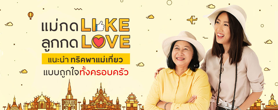 แต่กิจกรรมยอดฮิตที่สามารถเติมเต็มความสุขและเรียกรอยยิ้มจากคุณแม่ได้ คงหนีไม่พ้นการพาท่านไปเที่ยวตามสถานที่ต่าง ๆ ถ้าเดือนที่ผ่านมาเราเที่ยวเองไปเยอะแล้ว เดือนสิงหาเรามาพาแม่เที่ยวกันบ้างดีกว่า ได้เวลาจูงมือแม่ออกจากบ้านเพื่อไปผ่อนคลายกับสถานที่และกิจกรรมใหม่ ๆ ให้คุณแม่ประทับใจกัน