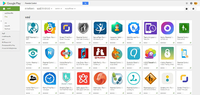 ภาพ: มีแอพพลิเคชันมากมายในหัวข้อ Parental Control ใน Google Play ให้เลือกดาวน์โหลด