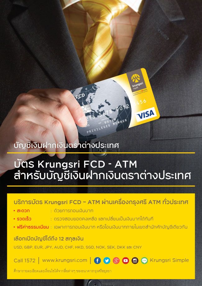บัตร Krungsri FCD - ATM สำหรับบัญชีเงินฝากเงินตราต่างประเทศ