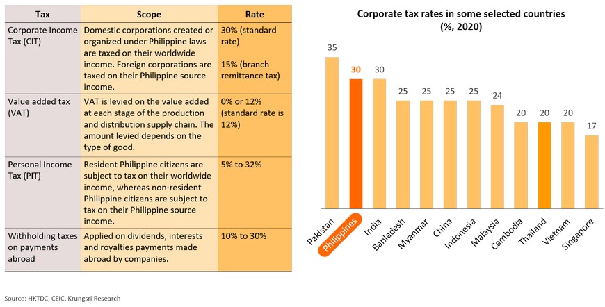 In addition, the corporate tax rate in Philippines is among the highest in the region