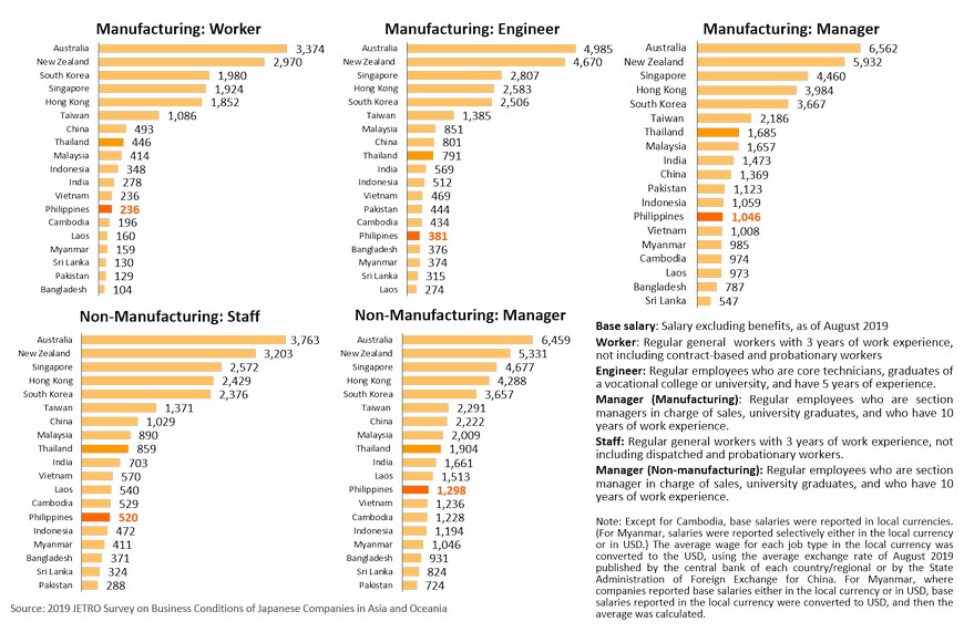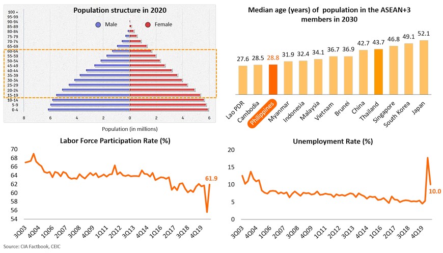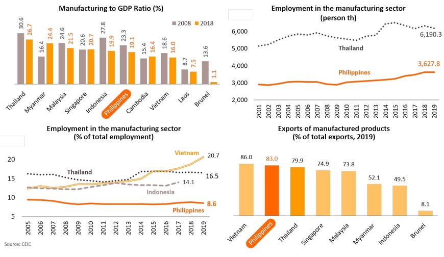 Low wage levels should support attractiveness of the Philippines in attracting labor-intensive manufacturing