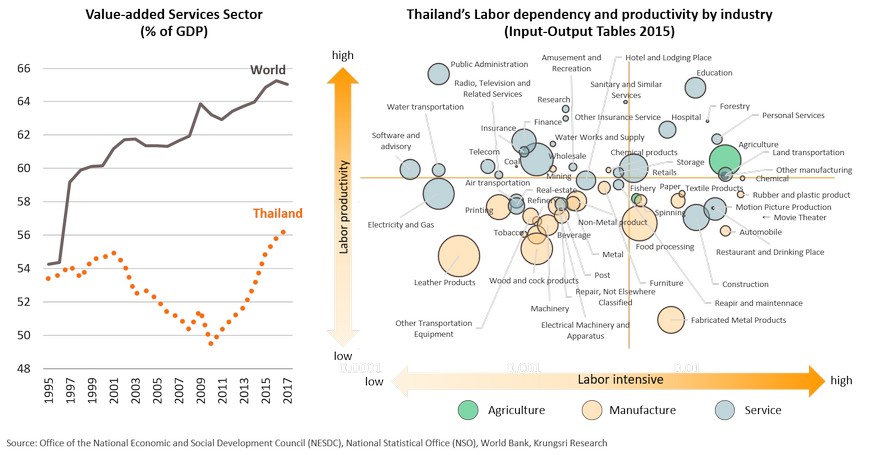Thailand is moving toward service-based economy and could shift some labor-intensive activities to the region