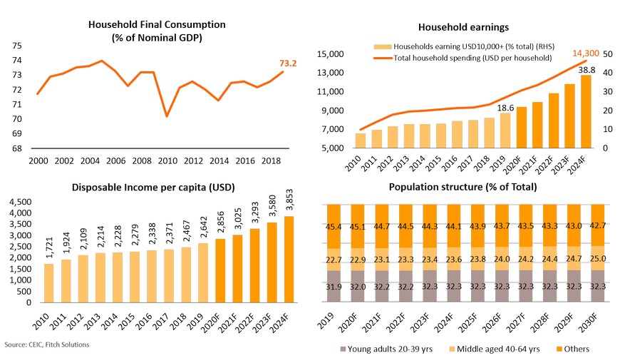 While the labor market conditions are being worsened in the near term due to the impact of the pandemic, we view that favorable demographic structure and benign conditions in the labor market against a backdrop of high economic growth would underpin household consumption in the years ahead.