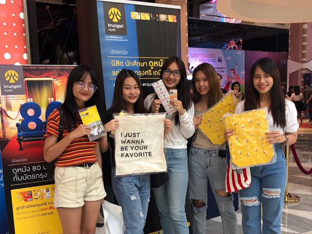 กรุงศรีจัดกิจกรรมดูหนัง “JOKER” สำหรับลูกค้ากลุ่มนักศึกษาที่ถือบัตรกรุงศรี เดบิต เมื่อวันเสาร์ที่ 5 ตุลาคม 2562 ที่ผ่านมา ณ โรงภาพยนตร์ SF World Cinema ศูนย์การค้า Central World ซึ่งได้รับความสนใจจากกลุ่มลูกค้านักศึกษาลงทะเบียนเข้าร่วมกิจกรรมเป็นจำนวนมาก