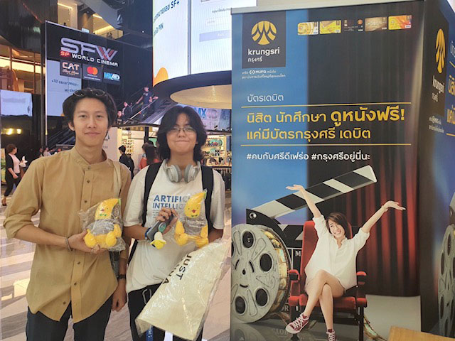 กรุงศรีจัดกิจกรรมดูหนัง “Star Wars: The Rise of Skywalker” สำหรับลูกค้ากลุ่มนักศึกษาที่ถือบัตรกรุงศรี เดบิต เมื่อวันเสาร์ที่ 21 ธันวาคม 2562 ที่ผ่านมา ณ โรงภาพยนตร์ SF World Cinema ศูนย์การค้า Central World ภายในงานมีทีมเจ้าหน้าที่คอยแนะนำและเชิญชวนให้ลูกค้าสมัครผลิตภัณฑ์และบริการของธนาคาร อาทิ กรุงศรี โมบาย แอพพลิเคชั่น (KMA) เปิดบัญชีออมทรัพย์มีแต่ได้ เปิดบัญชีกองทุนรวม ผ่านช่องทาง KMA บัตรเครดิตสำหรับนิสิต นักศึกษา และการแลกของขวัญพิเศษจาก Krungsri GIFT รวมไปถึงการปรากฏตัวสุดเซอร์ไพรส์จากน้องกล้วยมั่งมี และการเล่นเกมส์ตอบคำถามก่อนชมภาพยนตร์ ซึ่งสร้างสีสันภายในงานซึ่งได้รับความสนใจจากกลุ่มลูกค้านักศึกษาเป็นอย่างท่วมท้น